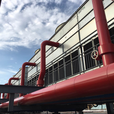 共设置5台方形开式冷却塔,采用一对一方式,四用一备。